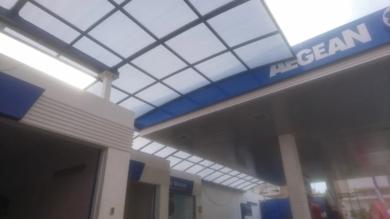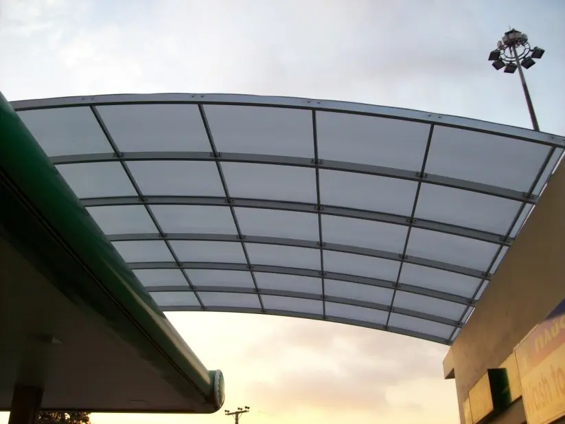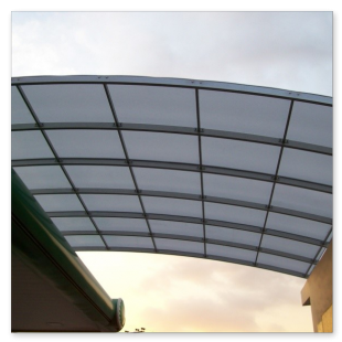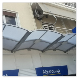 Various types of feeders with polycarbonate sheets. Lightweight construction suitable for the connection of a canopy with a building or for other specific uses etc.