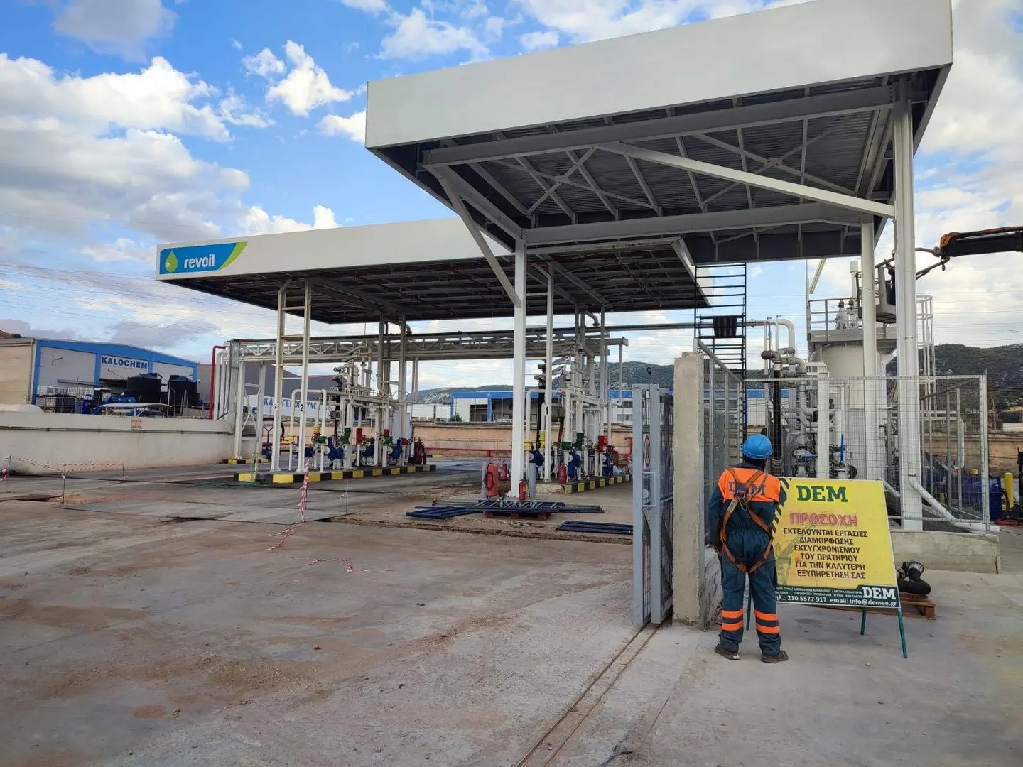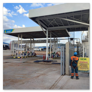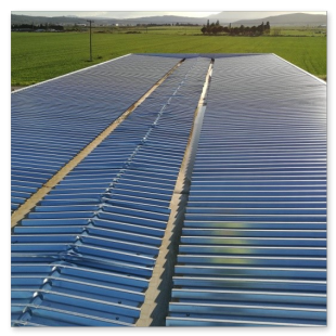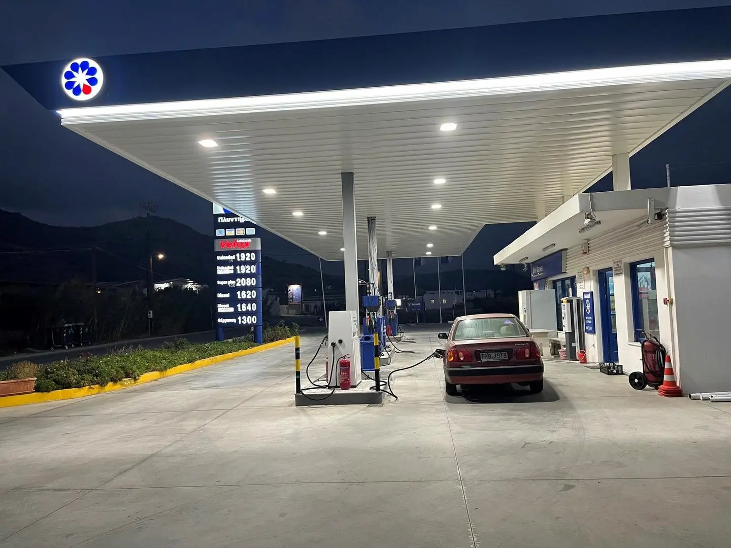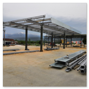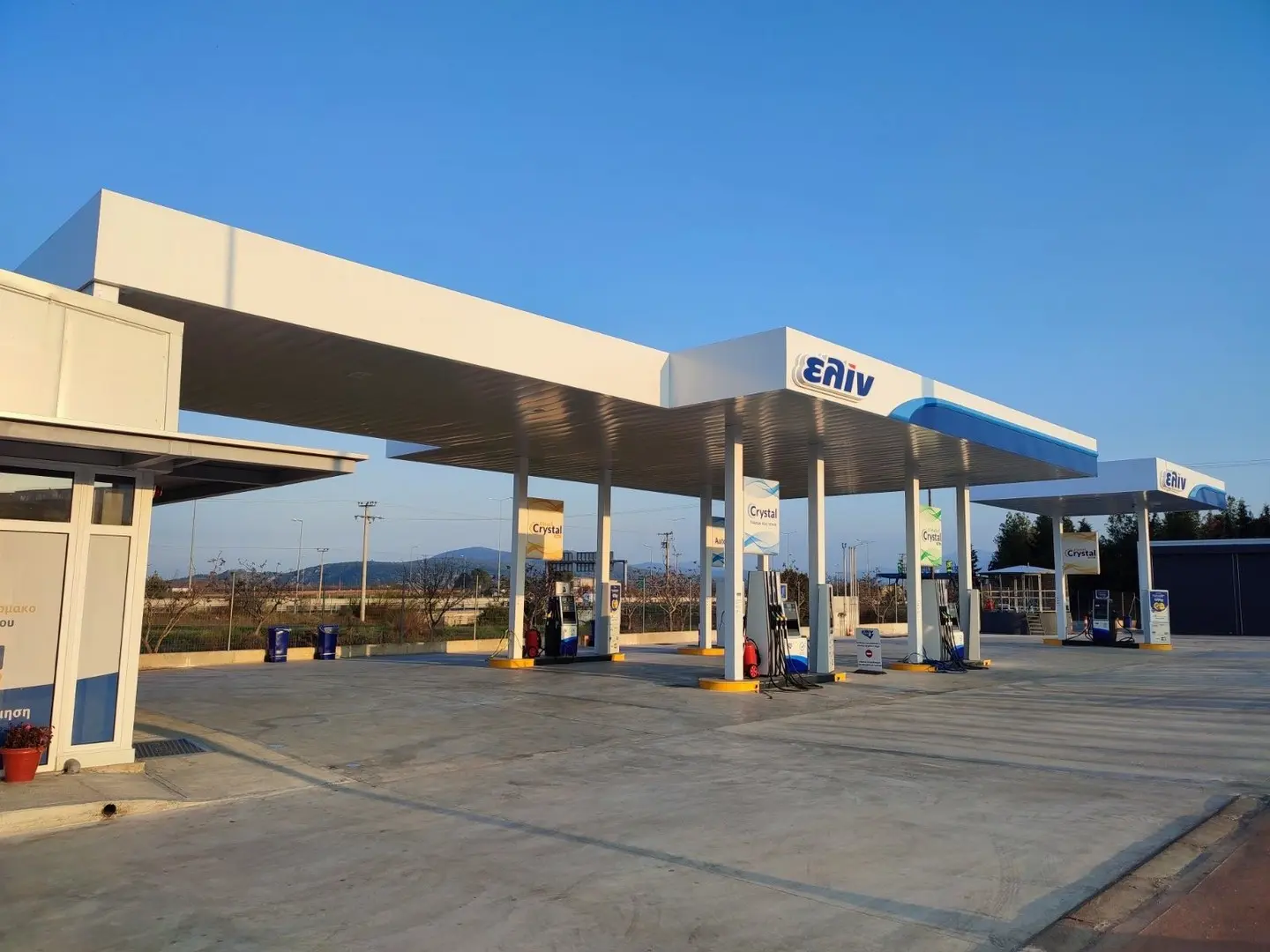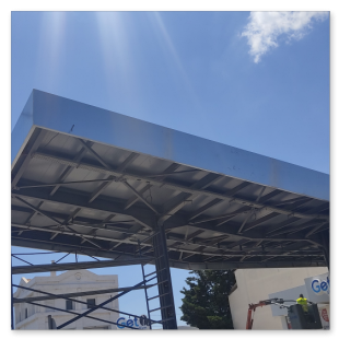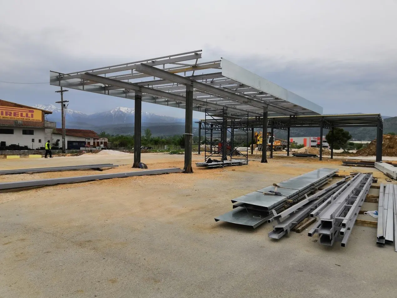 The metal canopy of the petrol stations is synonymous with our company. The canopy of the fuel pumps may be single-column, double-column or poly-column of various measurements. It consists of double ceiling. It is delivered with the pre-painted linear metal ceiling, which is custom-made so that it creates a flat surface, the ceiling made from trapezoidal galvanised sheet metal and the galvanised fronts. The construction is fully modular.